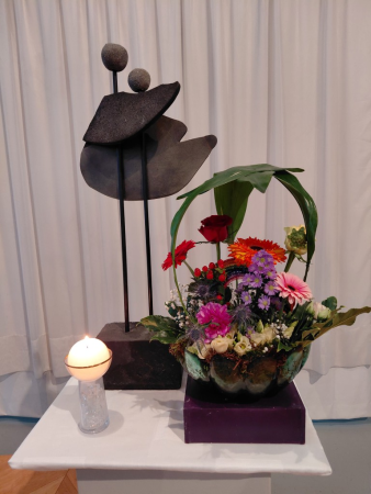 Liturgische bloemschikking bij de Regenboogdienst